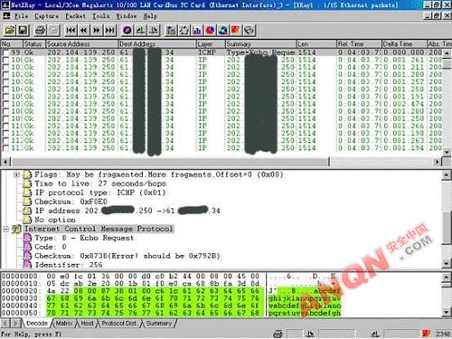 分析某ISP的网警数据发现ICMP包已经超过30%,攻击源依然是内部托管的用户主机202.xxx.xxx.208、 202.xxx.xxx.250、202.xxx.xxx.251三台机器,但攻击目标已经改变为61.xxx.xxx.157(详细请看网警运行时的界面,如图)。在分析过程中,另外发现202.xxx.xxx.233也有类似被入侵作为扫描源的现象,已报告王工程师。