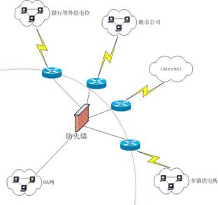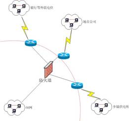 本网络拓扑方案是某省电力县级网络安全项目实施中的第一步。县级网络中设置放火墙,在保证地市公司、乡镇供电所及银行等外联单位正常接入内部网络的同时,对各个接入单位设置合理的安全策略,防止来自接入单位的非法访问甚至恶意攻击,保护内部网络资源。具体安全策略视不同接入单位的不同权限而定。