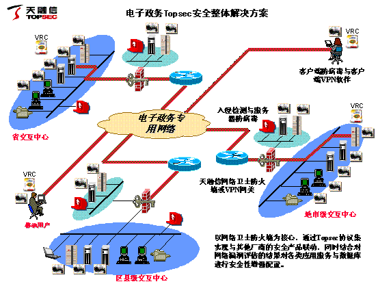 电子政务Topsec网络安全解决方案拓扑结构如下图所示: