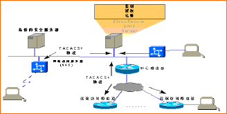 (TACAS:Terminal Access Controller Access Control System--终端访问控制系统)有了这样的服务器以后,连接在这个网络的所有用户,不管它需要以什么样的方式访问网络设备,都必须通过服务器的安全性监测。由于服务器上可以运行功能很强的安全性方面的软件,可以完全满足BOSS系统的安全需求。在路由器、拨号访问服务器和安全服务器之间传送的可以是经过加密的有关网络安全协议的数据流。