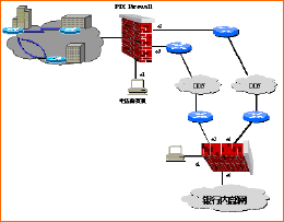 另外,BOSS系统与其它系统的网络接口(如话费代收及银行、邮储、公安之类的接口)都是在区中心采用防火墙等安全机制来集中保证网络的互相独立性。下图以银行为例说明。每家银行现在基本上都可实现通存通兑,也就是说都有一套覆盖全区的网络,而新疆移动采用的是计费、营业及综合帐务系统的集中模式,所以只要在区中国移动与各家银行的区中心作网络连接就可以实现联网了。这种方法接口单一,连接方法简单,易于管理,安全隐患小,投资节约。