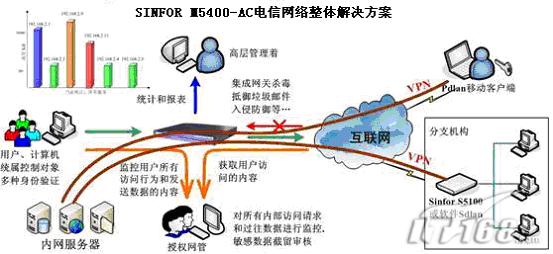 针对应用系统众多、人员管理复杂等电信网络的特点,深信服科技推出的电信级UTM网络安全-SINFOR M5400-AC安全网关,针对电信网络的特点,从内网安全管理,到外部安全防范以及远程接入安全访问等多种角度,进行统一管理和部署,保证了电信网络和各种核心信息资源的安全性。