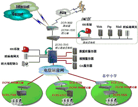 教育城域网防火墙配置方案,如下图所示: