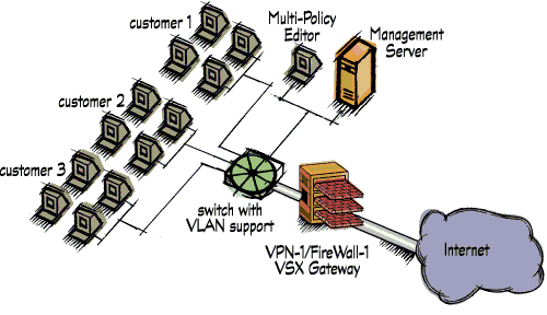 VPN-1?/FireWall-1? VSX 是一种为数据中心环境设计的高速、多策略安全解决方案。它在市场领先的 FireWall-1 中增加了相同的、已获专利的 Stateful Inspection 技术。通过在单一平台上集合 100 个用户安全域,VPN-1/FireWall-1 VSX 将硬件投资降到最低并可有效利用空间。其简单、直观的供应过程可以快速部署用户安全,从而降低从数据中心传送安全服务的成本。
