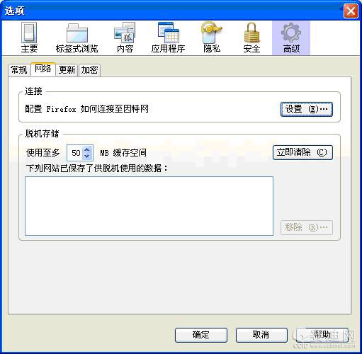 2、单击“高级”按钮,然后转向“网络”标签并单击“设置”,如图: