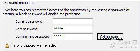 2、在“Password protection”的设置中,在“Current password”文本框内输入当前的口令。如果你是第一次配置口令,不需要对此设置。