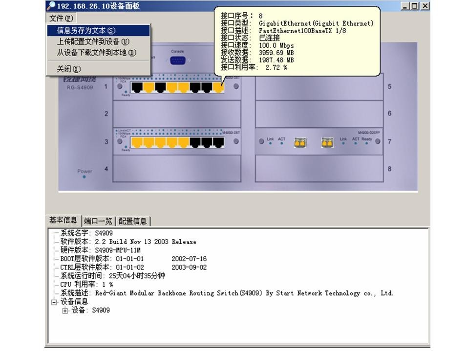 STARVIEW的设备面板管理能够很清楚的看到校园中设备的面板,包括端口数量、状态等等,同时可以很方便的登陆到设备上,进行配置的修改,完善以及各种信息的察看。
