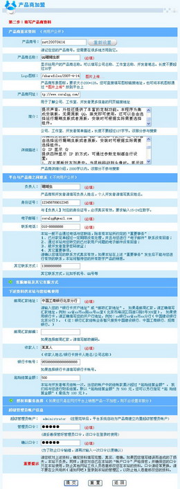 根据页面上的提示输入产品信息便可轻松完成产品发布过程。