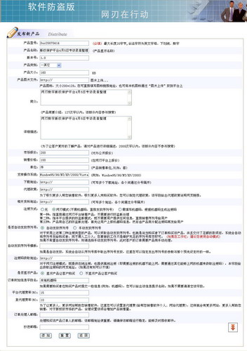 为了更有效的保护知识产权,所有在“网刃”上发布的数字产品都可以进行加密操作,由于网刃是对很多加密算法的综合使用,并且将注册、认证系统分为两部分,第一部分是与产品绑定的注册终端,第二部分是在网刃平台的注册认证系统,只有注册终端“数字序列”在认证系统上认证通过,终端用户才有产品使用权,由此可见网刃平台是将数字产品的销售软化成“数字”进行销售的,盗版问题也迎刃而解,也可以将网刃平台看成是架设在互联网的“外置注册机”;几乎没有被破解的可能,下面就跟随笔者了解一下“网刃”的加密效果。