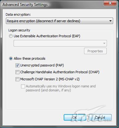 我在一台Vista笔记本上配置了一个L2TP/IPSec VPN连接,需要输入预共享密钥、用户名和密码、USG100的IP地址,以及启用PAP,如图15所示。配置完成后,我可以从这台Vista笔记本上正确的连接到USG100上。