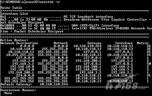 在运行SSL客户端的时候,我在DOS命令窗口下输入了命令“netstat -r”,得到图17所示窗口,显示了我的笔记本的路由表。注意左侧的目的网络中包含192.168.3.0、192.168.10.0和192.168.13.0,这些子网正是USG100中地址对象的子网。这个输出证明,我的笔记本已经安装了可以通过SSL VPN访问这些网络的路由。