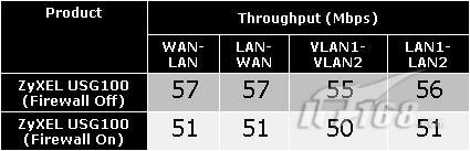 从上面的测试结果中,我们可以得出两点结论。第一,尽管它的性能非常均衡,而且比其它UTM设备要高一些,但是它很明显未能完全利用其千兆接口的性能。第二,USG的防火墙功能会使其吞吐能力降低5-6Mbps。