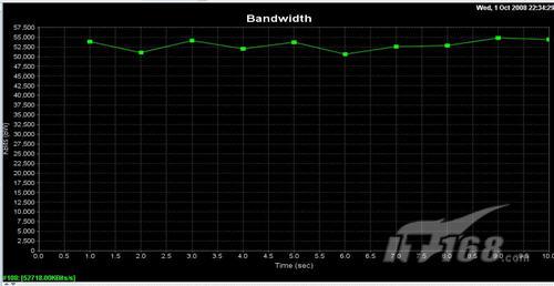 而且,数据流吞吐能力非常稳定,没有出现骤降的现象。在我的测试过程中,Jperf所产生的曲线相对非常平稳,如图19所示。
