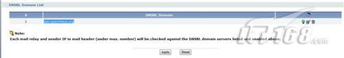 另外,USG100可以使用多个不同的反垃圾邮件服务,诸如spamhouse.org或sorbs.net,来根据电子邮件的来源地址判断是否为已知的垃圾邮件源。在USG100配置中没有默认的过滤器,不过它可以让用户选择链接到一个免费的反垃圾邮件服务器,这是一个非常不错的功能。如图6所示,我在USG100中设置它通过查询zen.spamhaus.org所维护的免费DNSBL,来检测未知垃圾邮件发送者。