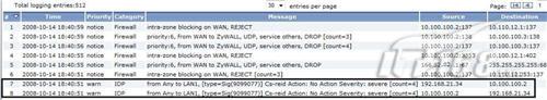 我创建了一个简单的定制威胁特征Cs-reid,来匹配来自任何系统的使用ICMP服务(协议)的通信,并对其进行日志记录。为了保持示例的简单性,我没有在数据包的第三层或第四层头信息中设置任何参数。大家都知道,Ping使用ICMP协议,于是我从连接在WAN口上的计算机对连接在LAN口的计算机进行ping操作,令人高兴的是,我创建的简单威胁特征码被匹配了,从而产生了图9中第七行和第八行所示的日志记录。