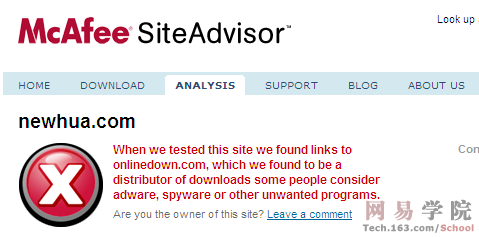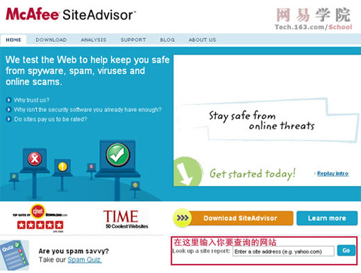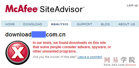 McAfee推出了一种名为SiteAdvisor的Web排行工具(可以在线查询某网页是否含有恶意程序)之后,我们似乎能多一条路去分析和了解哪些网站会有病毒等恶意程序。 点这里访问该页面 。