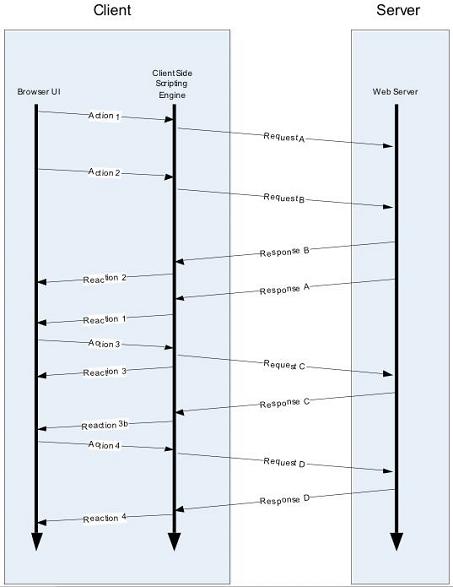正常的web应用程序在同步模式下工作,一个web请求之后,一个响应在表示层引起一些动作。例如,点击链接或者提交按钮向web服务器产生一个带有相应参数的请求。传统的” click and wait”方式限制了应用程序的交互性。Ajax(Asychronous Javascript and XML)技术的使用缓解了这个问题。文中,我们将Ajax定义为向web服务器产生异步调用而不引起网页完全更新的方法。这种交互性的通过三种不同的组件实现:客户端脚本语言,XmlHttpRequest (XHR)对象和XML。