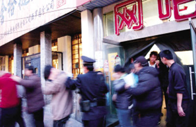 其中一组民警在金世纪网吧内也展开抓捕。由于网吧电脑具有自动删除功能,只要关机,电脑内的信息将全部消失。因此开始抓捕后,埋伏在网吧前、后门的侦查员同时突入网吧,与预先埋伏在嫌疑人身边的侦查员一起行动,在几秒钟内将网吧内的人员全部控制,所有人的双手都离开电脑。在这次网吧行动中,侦查员共抓获包括该团伙主要头目在内的60余名犯罪嫌疑人。