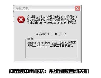 冲击波(2003年)于2003年8月12日被瑞星全球反病毒监测网率先截获。病毒运行时会不停地利用IP扫描技术寻找网络上系统为Win2K或XP的计算机,找到后利用DCOM RPC缓冲区漏洞攻击该系统,一旦成功,病毒体将会被传送到对方计算机中进行感染,使系统操作异常、不停重启、甚至导致系统崩溃。