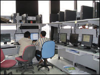 奥运IT集成实验室里,两名工作人员正在分析安全报警信息