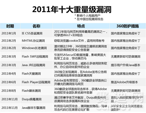 据了解,过去一年中360曾多次全球率先截获各种高危漏洞,包括Windows长老漏洞、Flash天窗漏洞、Flash媒体漏洞等,因此受到微软和Adobe公司的官方致谢,是目前国内唯一获此殊荣的个人电脑安全厂商。