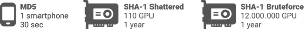 破解分为两个阶段,分别需要一个 CPU 进行 6500 年,和一个 GPU 进行 110 年的计算才可以完成。这是因为研究者采用了自行研发的 Shattered 破解方法,其效率远胜于使用暴力破解。而且 Google 云平台提供的大规模计算技术,显著减轻了负担。