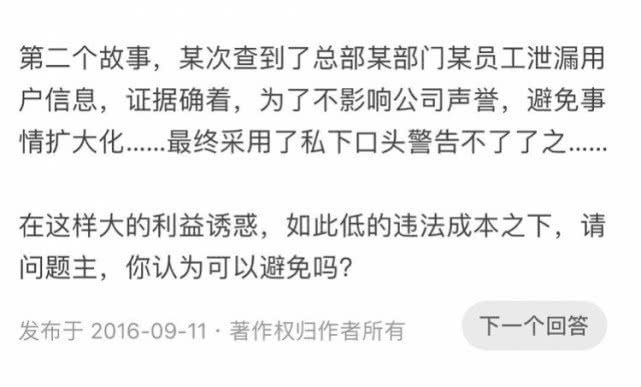 与保险企业类似,体量越大、业务拓展越迅速、人员流动性越高的企业,越容易给内鬼提供可乘之机。智能手机巨头苹果、快递企业顺丰、电商平台淘宝、生活服务平台美团,都曾曝出业务人员倒卖客户信息的案例。