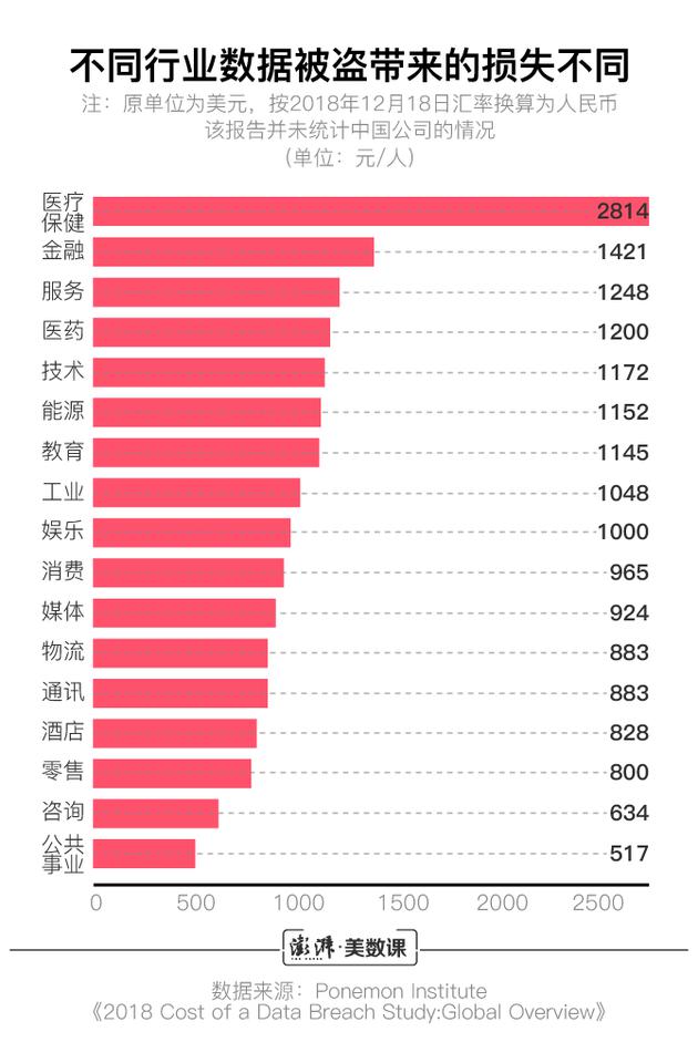 而不同行业的数据泄露成本也不同。在监管较严的行业,如医疗保健和金融行业,数据泄露的成本非常的高,而物流、酒店行业的数据泄露成本就要低很多。虽然中国公司并未被列入调查范围,但这一结论依然可以参考。