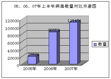 2007年上半年,电脑病毒异常活跃,木马、蠕虫、黑客后门等轮番攻击互联网,从熊猫烧香、灰鸽子到艾妮、AV终结者,重大恶性病毒频率发作,危害程度也在逐步加强,互联网安全面临的威胁更加严峻。
