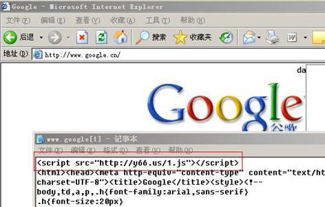 请注意Google的主页并没有被黑或被挂马,出现的原因主要是城域网中的网关受到了ARP欺骗的攻击。此种技术的要点就是感染一台系统就可导致所用用户受到网页挂马的攻击。