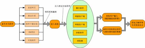 通过注入网游、网银、聊天软件以及浏览器,对用户行为进行监控,窃取并传输用户隐私资料;