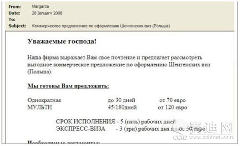 垃圾邮件发送者在欧洲提供签证问题快捷解决方案