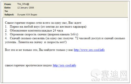 俄罗斯垃圾邮件通过短信提供访问黄色网站的方式