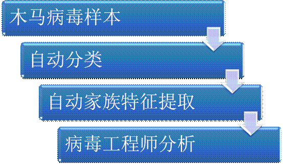 虽然每天收集到的木马病毒样本有8~10万个,但是瑞星的自动分析系统能够根据木马病毒的变种群自动进行分类,并利用“变种病毒家族特征提取技术”分别将每个变种群的特征进行提取。这样,对数万个新木马病毒进行自动分析处理后,真正需要真正人工分析的新木马病毒样本只有数百个。