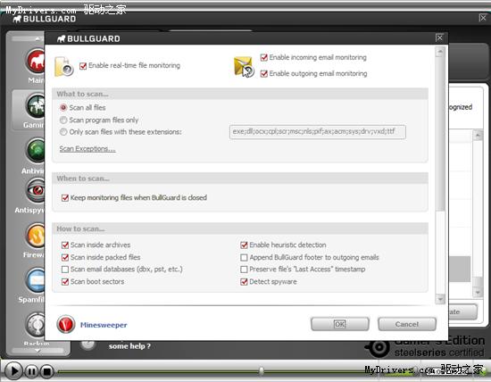 BullGuard Gamer's Edition支持Windows 2000和32/64位Windows XP/Vista,售价为每年49.99英镑,单用户授权提供1GB在线备份空间,同时购买三份授权则可以升级到5GB。