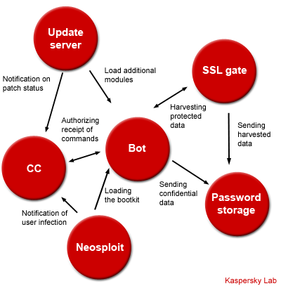 当研究基于此的网络攻击方案时,应该谨记一点,这些bootkit网络的所有模块都是具有机动性的。通过控制域名服务器,恶意攻击者可以很容易地并且快速地改变漏洞攻击的位置、指令和管理界面、模块加载位置以及隐私数据收集位置。这使得该系统非常稳定,要更改网络部件甚至都无需更改bootkit和它的模块的配置。