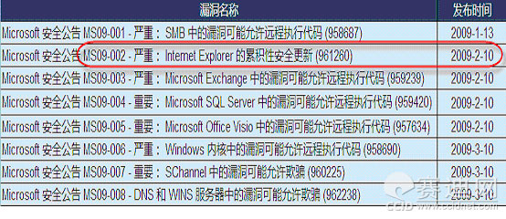 瑞星“云安全”系统监测发现,一旦出现微软漏洞,很快会被恶意攻击者广泛采用来进行网页挂马活动。2月20日,瑞星公司发出2009年度第一个红色(一级)安全警报,因为针对IE7新漏洞(MS09--002)的病毒攻击代码在网上公布,导致利用该漏洞的新木马病毒大量出现。从瑞星“云安全”数据中心统计看,该漏洞补丁发布日期前后的一段时间,恶意挂马网站的数目以及拦截次数均有不同程度的涨幅。