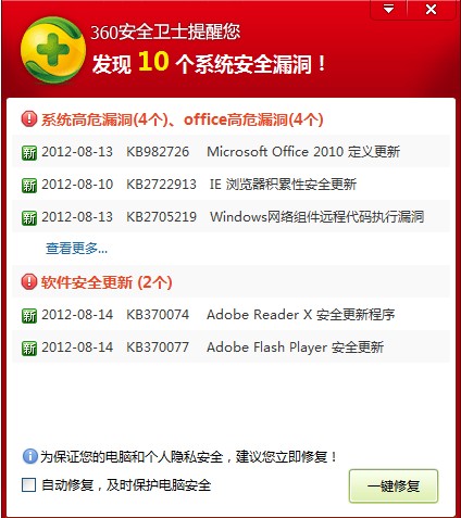 对此360安全专家表示,360安全卫士为用户提供完善的漏洞修复解决方案,包括微软的Windows安全更新、Adobe等第三方软件安全更新,以及360针对各种0day漏洞推出的临时补丁等,可以在官方补丁发布前免疫漏洞威胁,全面保护用户上网安全。
