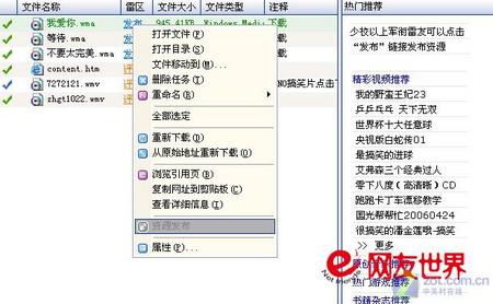 首先我们先将这个视频上传到任意一个空间,比如这里笔者上传到了Google的个人主页空间里面。然后用迅雷将视频下载到本地,在迅雷的下载任务框中,可以看到已下载的文件列表“雷区”栏中有一个“发布”链接。点击菜单“雷区”→“进入雷区”,打开迅雷帐号登录对话框,输入自己注册的用户名和密码,登录后在左侧的“雷友信息”中可以看到自己的积分和等级。如果是少校军衔就可以直接点击“发布”链接,或者点击右键,选择弹出菜单中的“发布到雷区”命令,将刚才下载的美女视频发布到迅雷的公共资源区(如图3)。