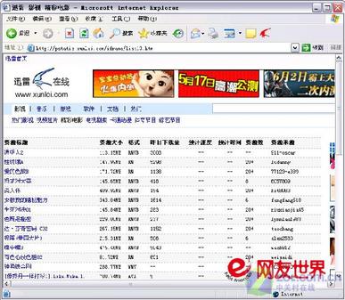 在程序界面右侧的“热门推荐”中点击“更多”按钮,用IE打开雷区资源发布页面,在页面中显示了公共下载资源类别以及每个分类下详细的资源信息(如图 4)。在资源信息中找到“资源来源”栏,可以看到发布资源的迅雷用户帐号,这些帐号肯定都是少校以上级别的。只要盗取其中的某一个帐号,就可以将视频木马上传到雷区了。