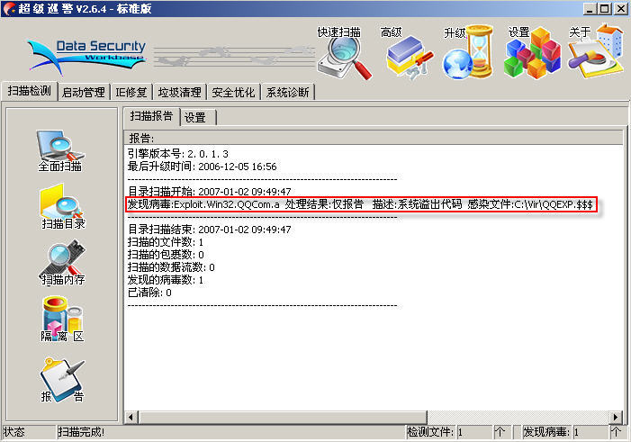 经过与QQ安全小组联系得知,QQ公司已经于昨日升级,修补该漏洞。DSWLAB也及时升级了超级巡警最新特征库,请广大用户升级到最新库,监测利用该漏洞的木马,强烈建议广大用户及时升级QQ,抵御病毒入侵,预防此漏洞危害系统。