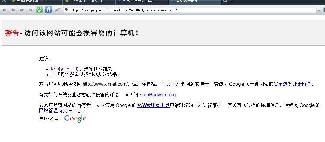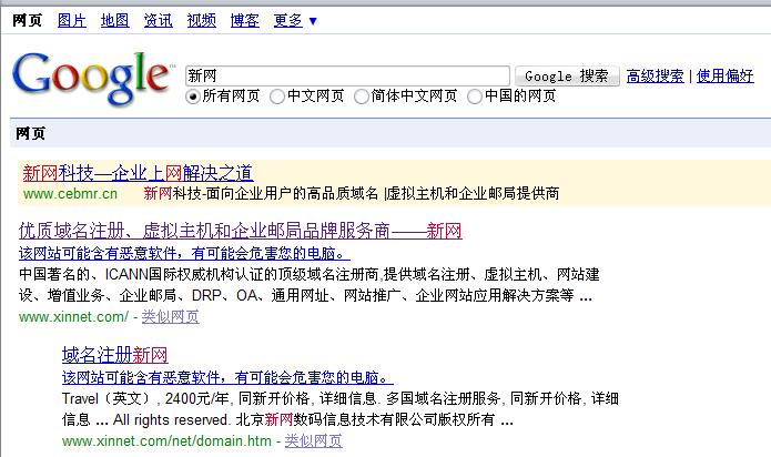 10月24日,据网友反映,新网官方网站近日被Google列入黑名单,称其隐藏恶意软件。