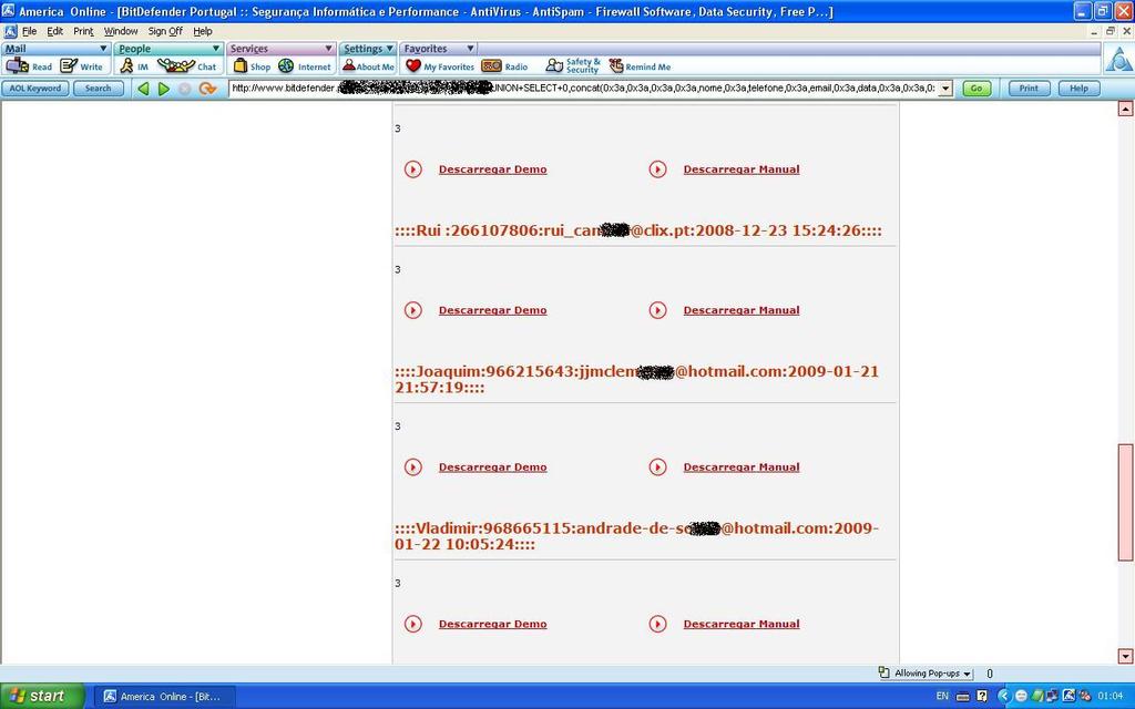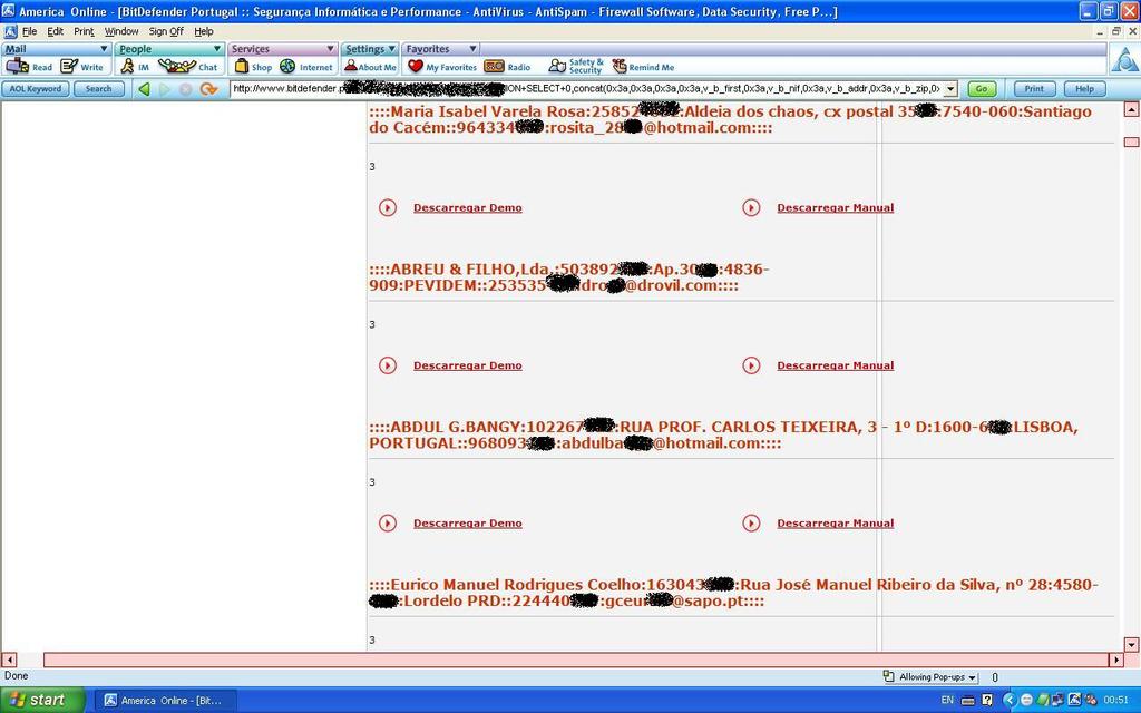 BD葡萄牙被黑的情景和卡巴斯基几乎一模一样,黑客将数据库中的用户和密码全数公之于众,包括管理员的用户名,密码,sessionID,Log文件一个都没有落下。看图: