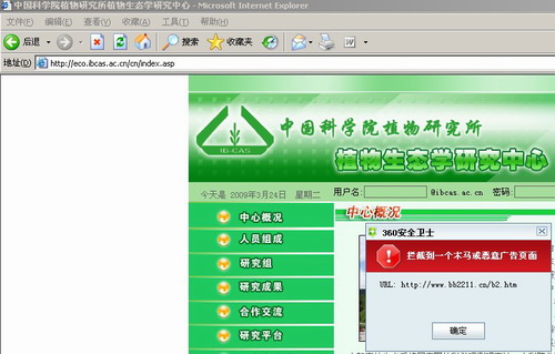 3月25日消息,360安全中心前日供截获最新挂马网址12637个,当日360安全卫士为2亿用户拦截了来自644103个恶意网址链接的总共10550141次挂马攻击。其中危害较为严重的知名“挂马”网址包括:中科院植物研究所、东南大学软件学院、中国养殖网、碰碰明星网等网站。