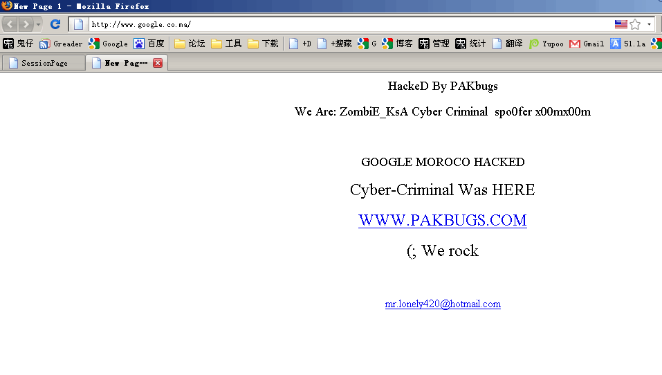 www.google.co.ma,Google摩洛哥的域名今天被黑客劫持了一小会——恢复访问也花了几个小时,现在访问已经正常。这次劫持事件长的足够让许多用户截屏留念。