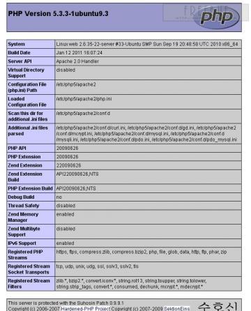 在宣布“战况”的同时,Inj3ct0r 声称这次攻击盗取了总共价值 242333 美金的私有漏洞利用代码。下图为 Inj3ct0r 为证明他们的入侵而提供的 PHPinfo:
