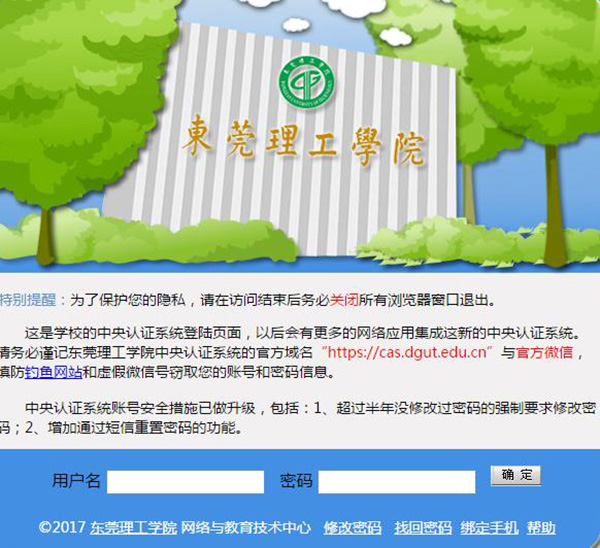 目前,东莞理工学院已经更新了中央认证系统,并升级了账号安全措施。