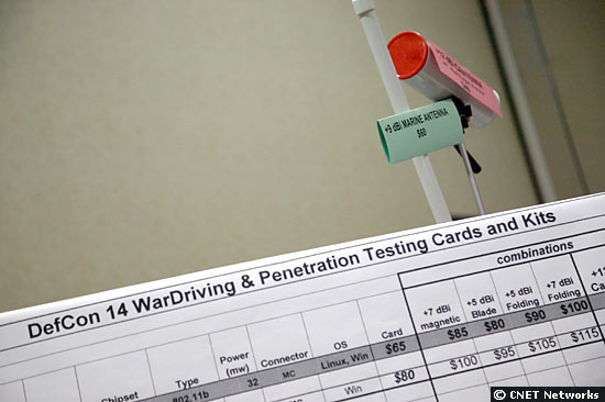 要破解无线系统就得靠Wi-Fi信号增波器,在今年的Defcon大会上,有企业趁势推出这类工具(WarDriving and Penetration Testing Cards and Kits)来加强笔记本电脑的接收强度。