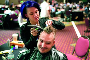 美国电子边界基金会(EFF)组织的志愿者在大会举办的助兴派对上为黑客赞恩剪了一个印第安马希坎式发型,他们的服务是基金会募款的手段之一。EFF 是一个由律师、志愿者、工程师和热心人士组成的非盈利组织,主要工作是维护人们在电子世界中的基本权利。它在今年的黑客大会筹得1.3万美元,黑客大会还在闭幕式上捐出了一张3.92万美元的支票。