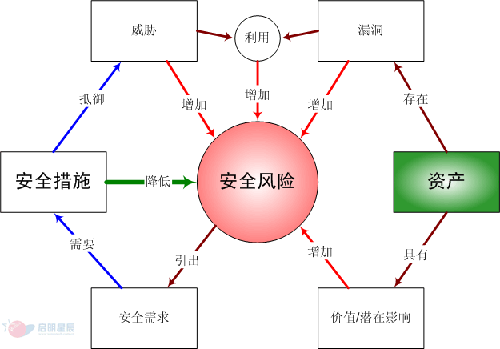 说起风险评估,大家脑海中首先浮现的可能是:风险、资产、影响、威胁、弱点等一连串的术语,这些术语看起来并不难理解,但一旦综合考虑就会象绕口令般组合。比如风险,用ISO/IEC TR 13335-1:1996中的定义可以解释为: 特定威胁利用某个(些)资产的弱点,造成资产损失或破坏的潜在可能性。